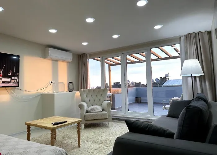 The 55 m² Fatih Merkezi Lokasyon Guezel Teras Manzarali Daire Istanbul is located a mere 1.9 km from Basilica Cistern and about a 25-minute walk from Topkapi Palace harem. Featuring a patio with views of the city, the apartment is just a minute's drive from Pertevniyal Valide Sultan Mosque.